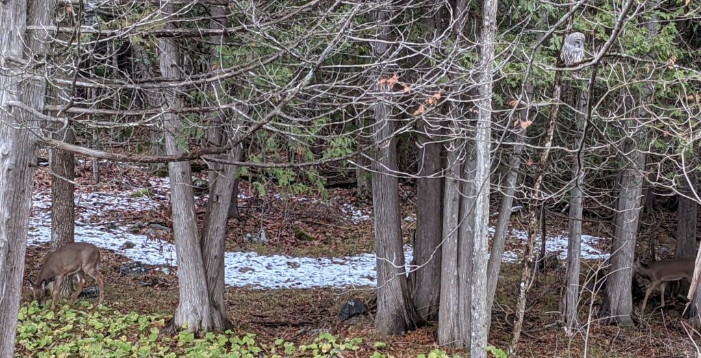 My sister says I need to include pictures. Here’s one from the LostMaples office window last week. There are (at least) 3 animals here if you can spot them!